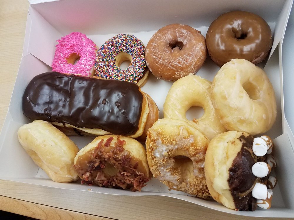Customer Favorites: Glazed Yeast Raised donuts and inventive "fancy" donuts.